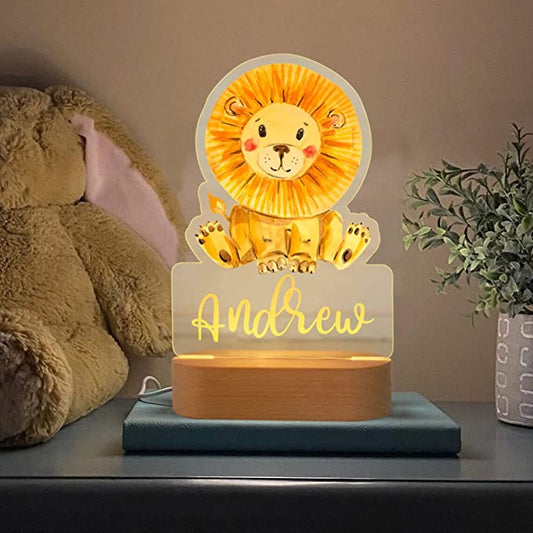Personalized Bedroom Led Night Light Boys Girls Animal Theme Lion