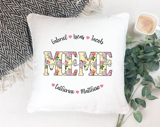 Personalized Blessed Mom Grandma Nana Gigi Name Pillow With Blossoms