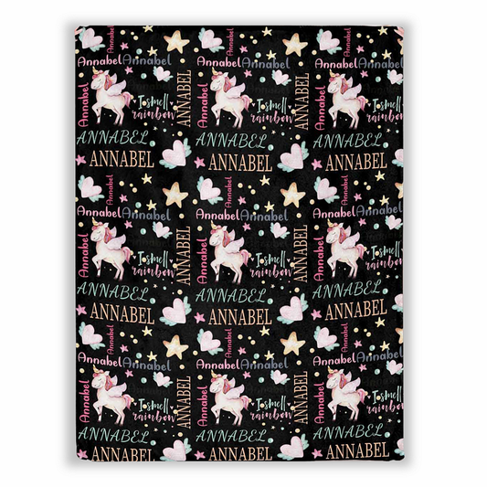 Custom Cute Closed Eyes Unicorn Name Blanket