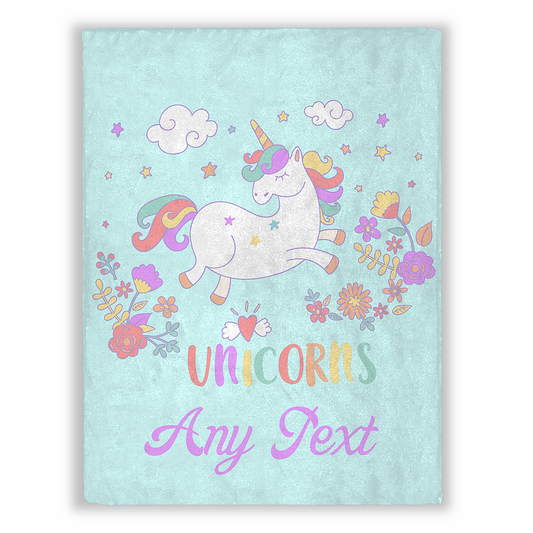 Custom Cute Closed Eyes Unicorn Blanket With Name Floral