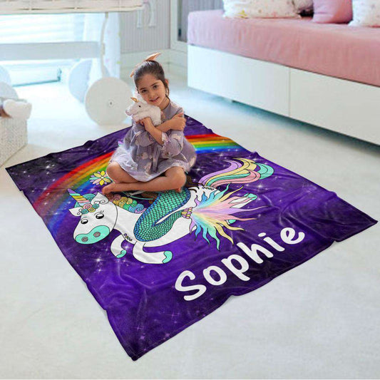 Personalized Magical Unicorn Dream Fleece Blanket Black