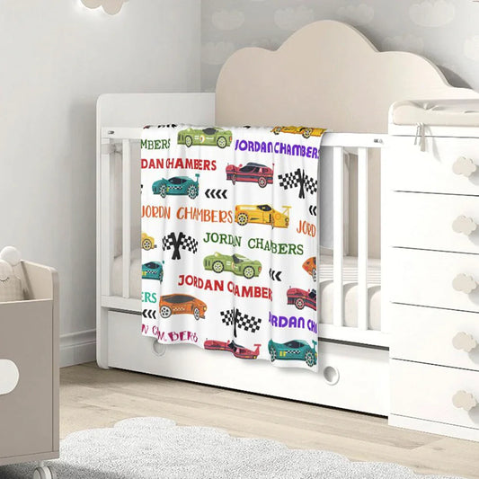 Personalized Name Fleece Racing Car Theme Blanket Toddler Baby Boy Girls | 112308
