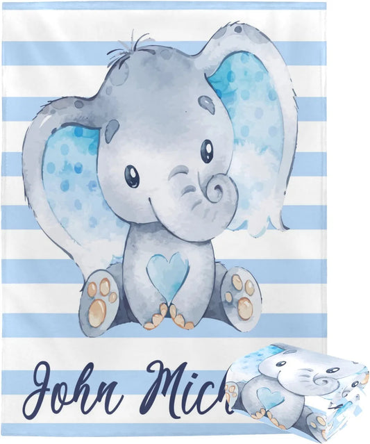 Personalized Name Fleece Blanket Elephant Flower Blue