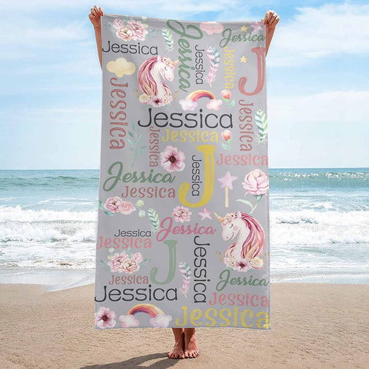 Personalized Unicorn Word Art Kids Beach Towel Multiple Colors