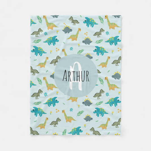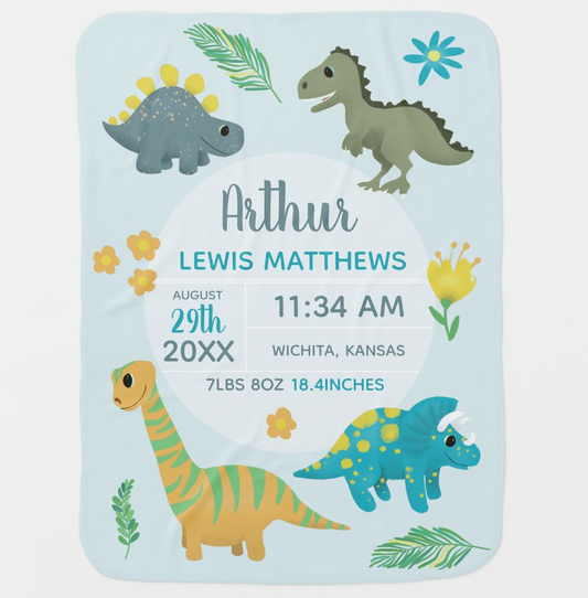 Custom Name Fleece Dinosaur Cute Dinosaur Birth Info Blanket