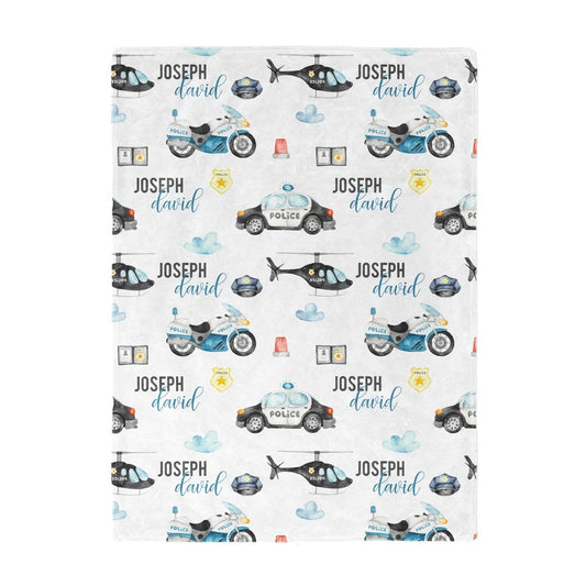 Custom Name Fleece Cartoon Blanket II10 - Police