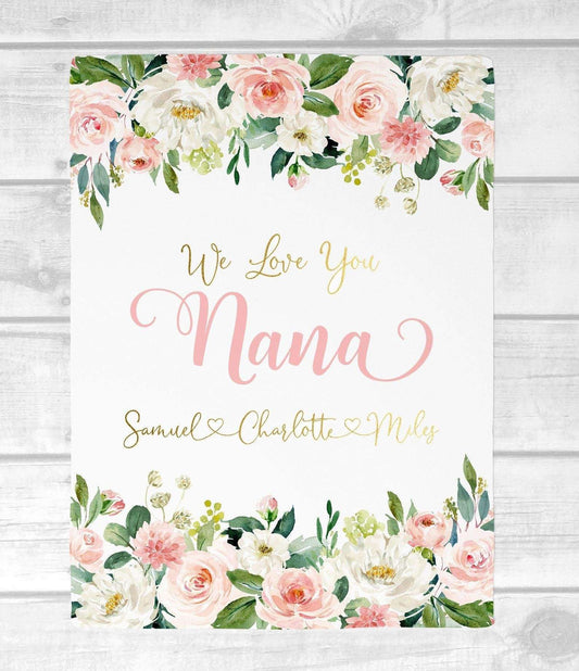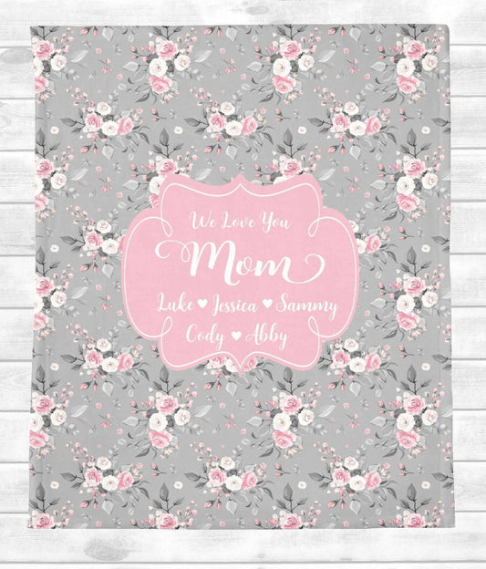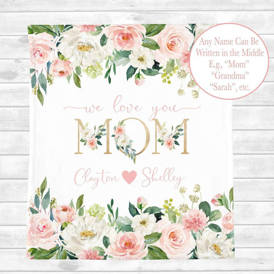 Personalized Flora Mom/Nana/Auntie We Love You Blanket Rose