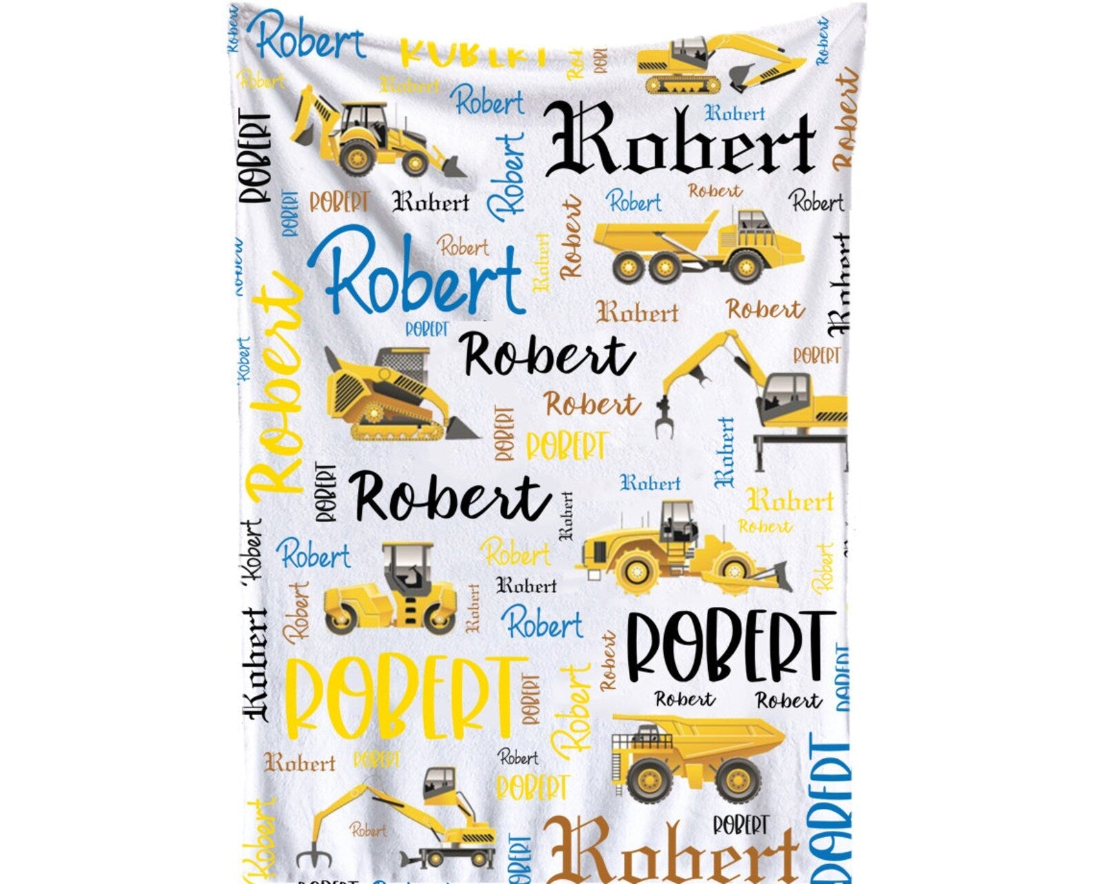 Personalized Minky Swaddle Blanket Name Art With Construction Theme