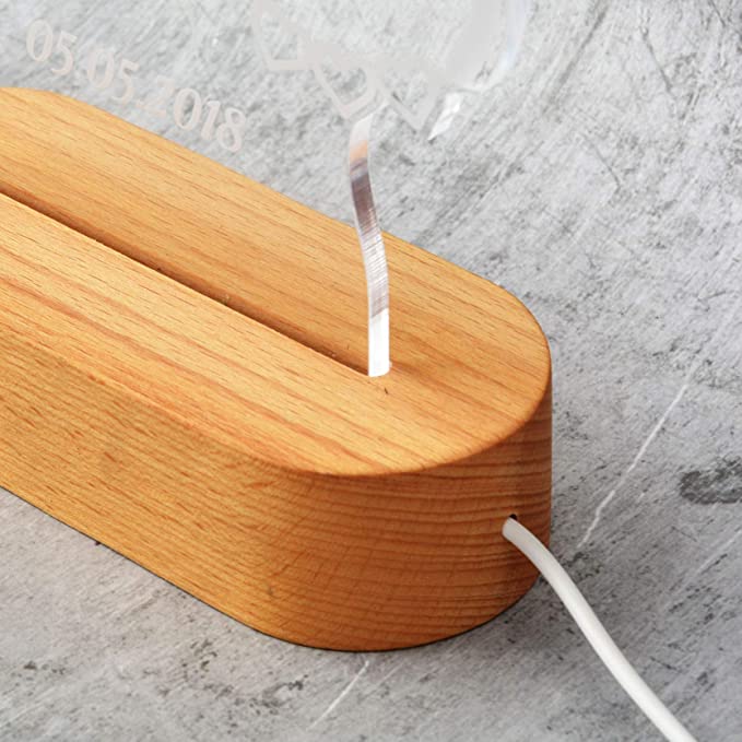 Whole body of the night lamp is made of Acrylic.The wood is a real natural pollution-free materials which makes the wall light feels softer, smoother,more durable.USB connection (adapter not included).
