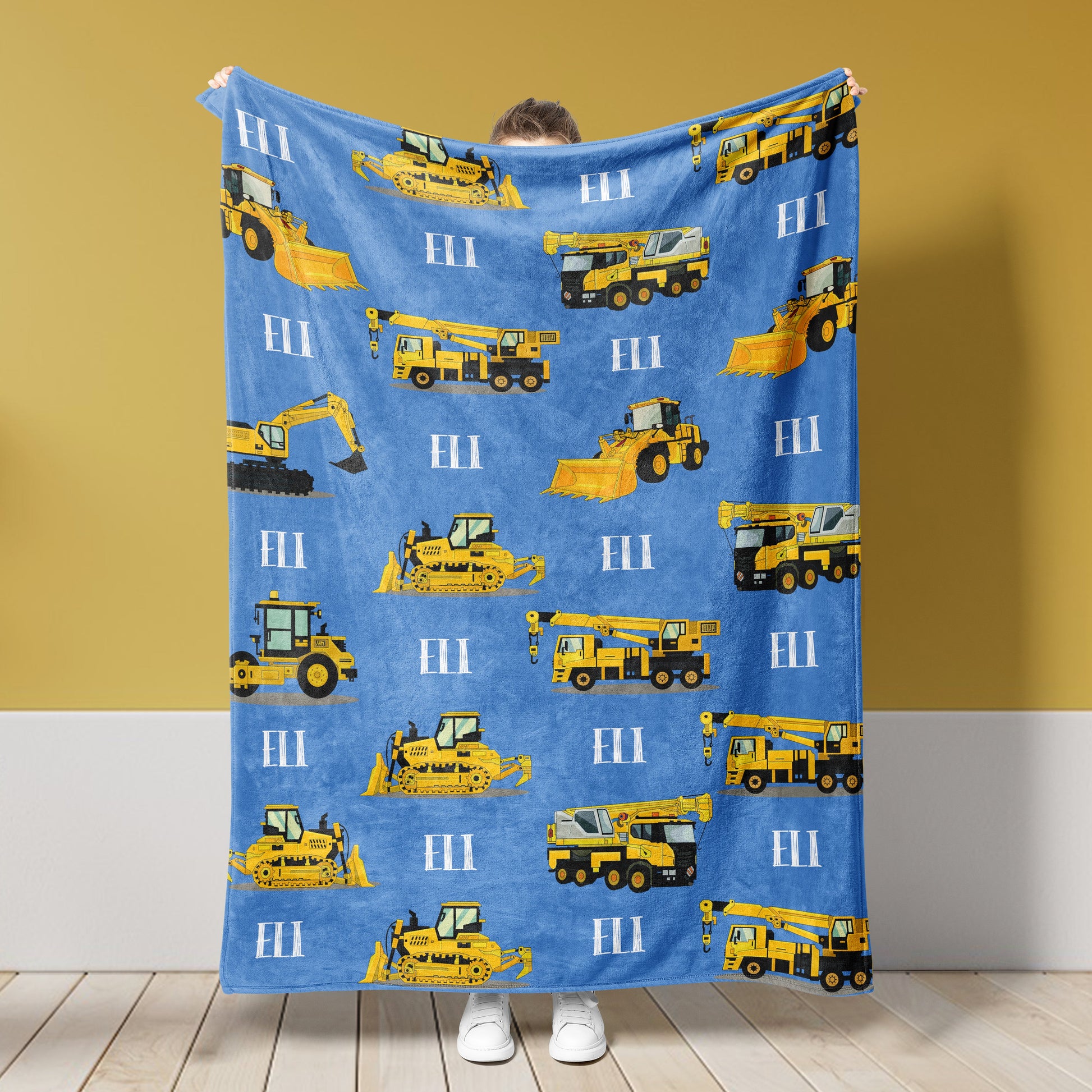 Custom Name Fleece Construction Blanket I22 - Trucks, Excavatros, Tractor, Tools Car For Kids