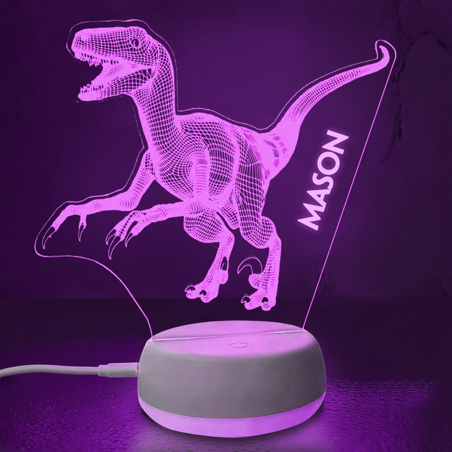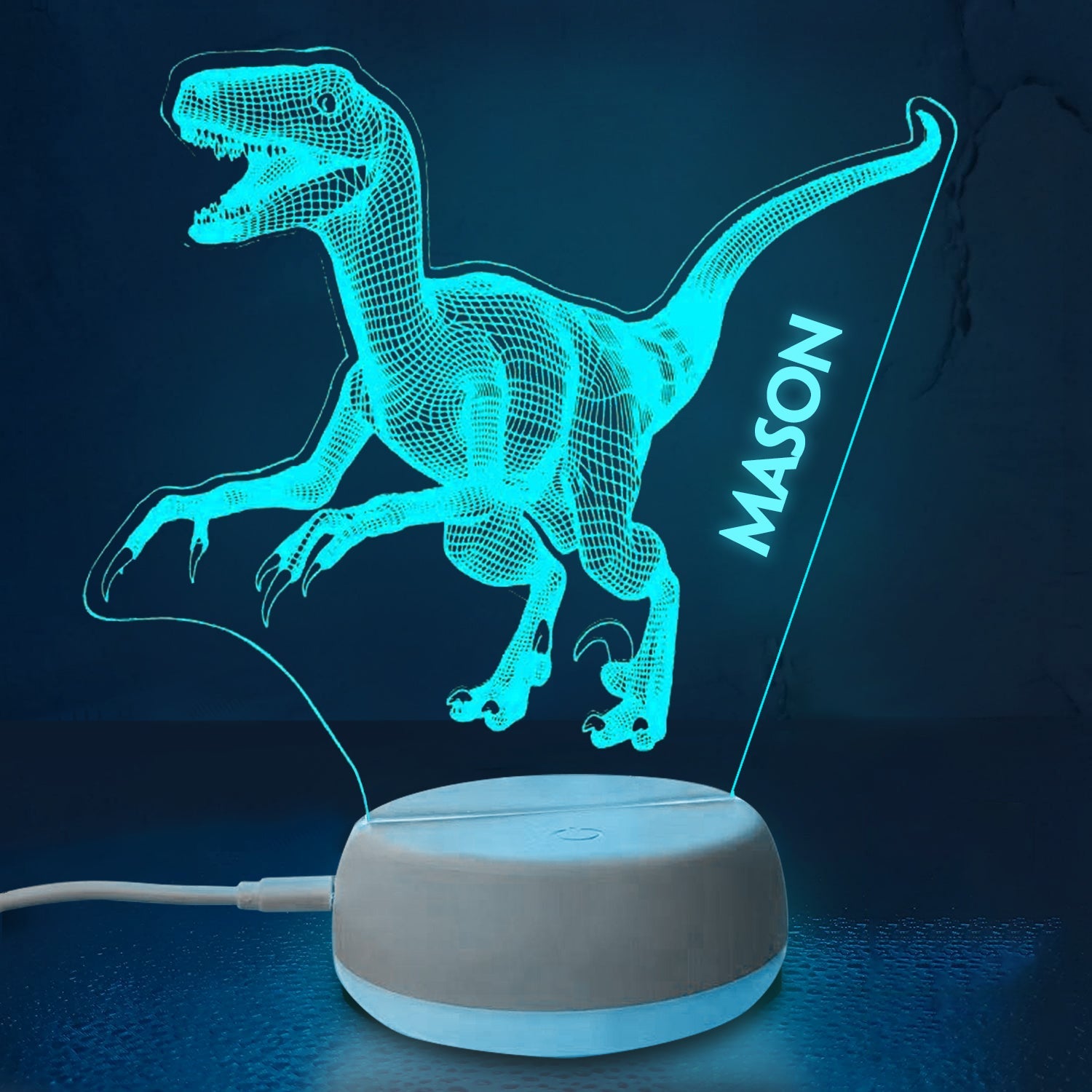 Personalized 3D Dinosaur T-rex Night Lights with Name 7/16 Colors Changing Led Lamp