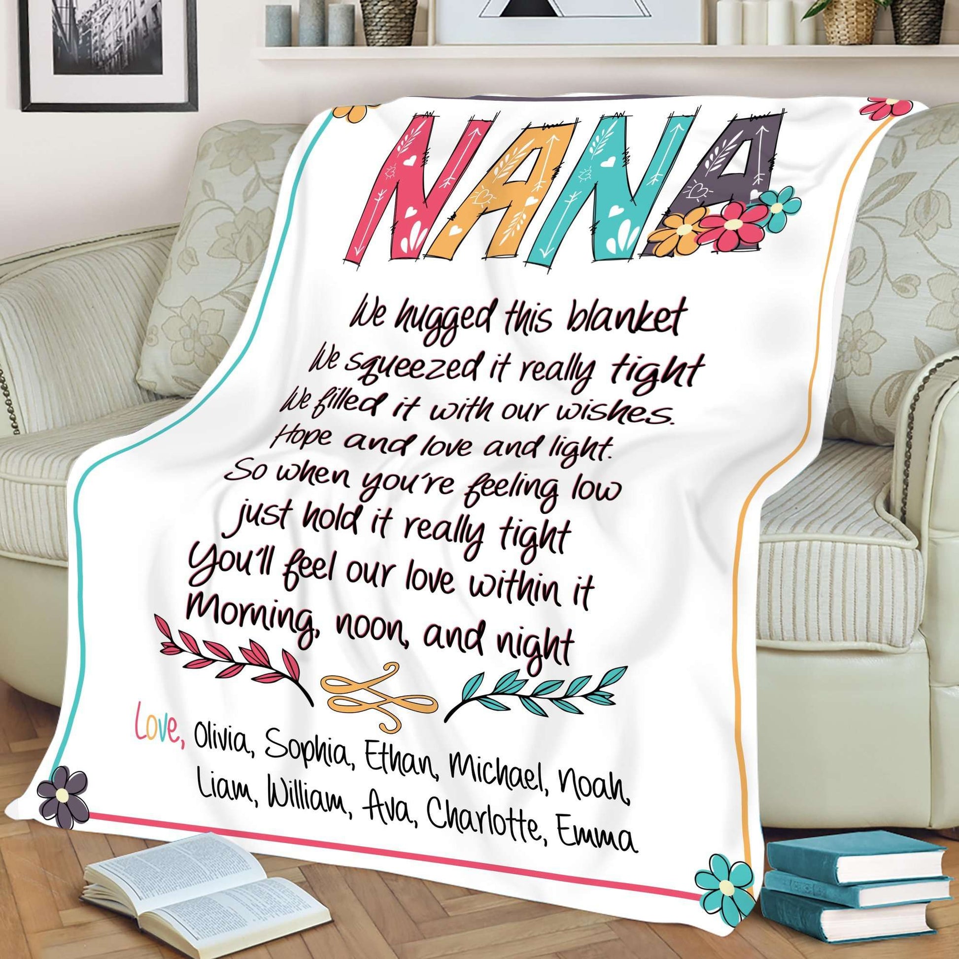 The Perfect Gift for Mother's Day Gift for Moms and Grandmothers, this personalized blanket is customized with family names, as well as the color and material of your choice to make a truly unique and treasured gift.