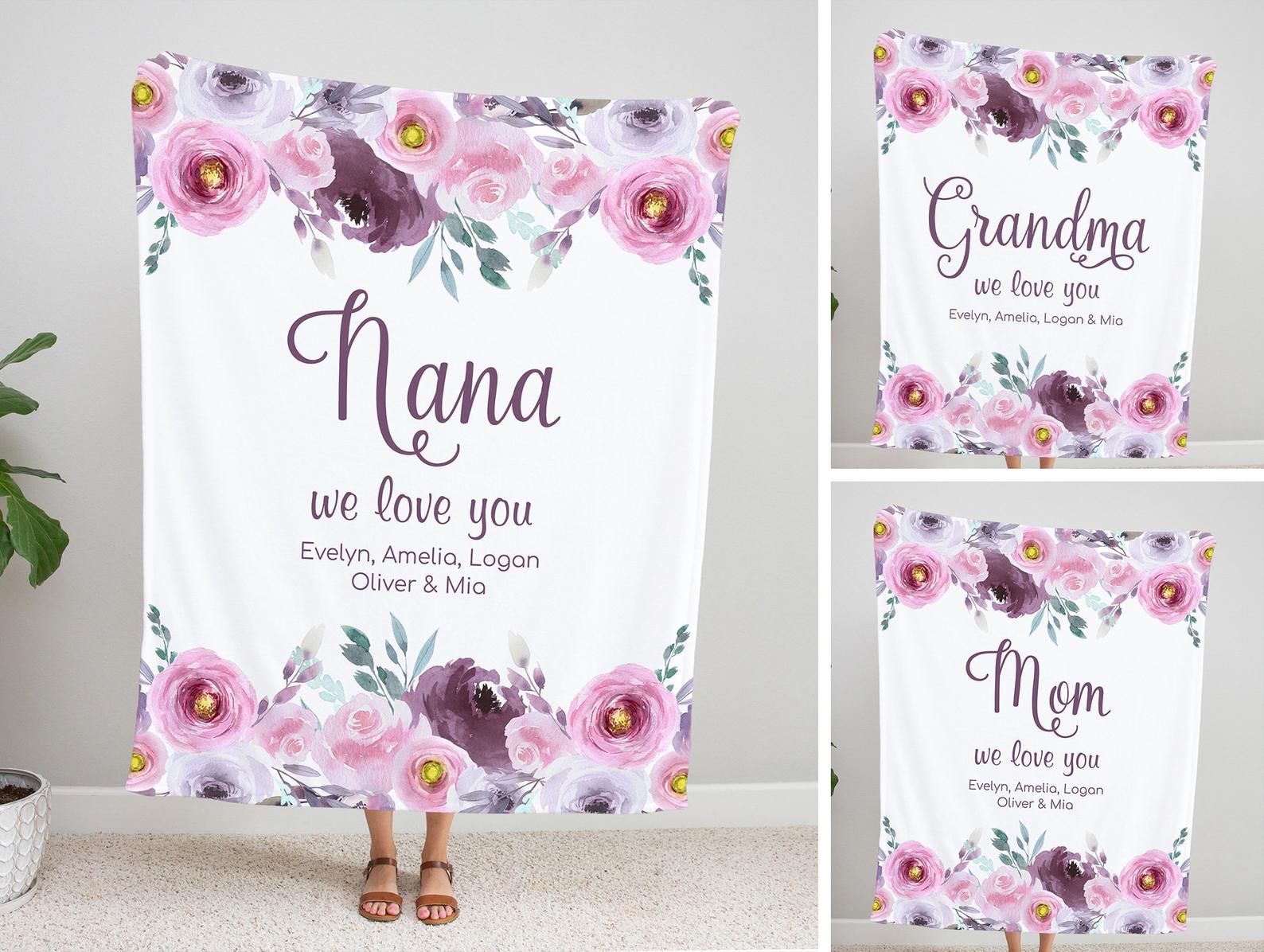 The Perfect Gift for Mother's Day Gift for Moms and Grandmothers, this personalized blanket is customized with family names, as well as the color and material of your choice to make a truly unique and treasured gift.