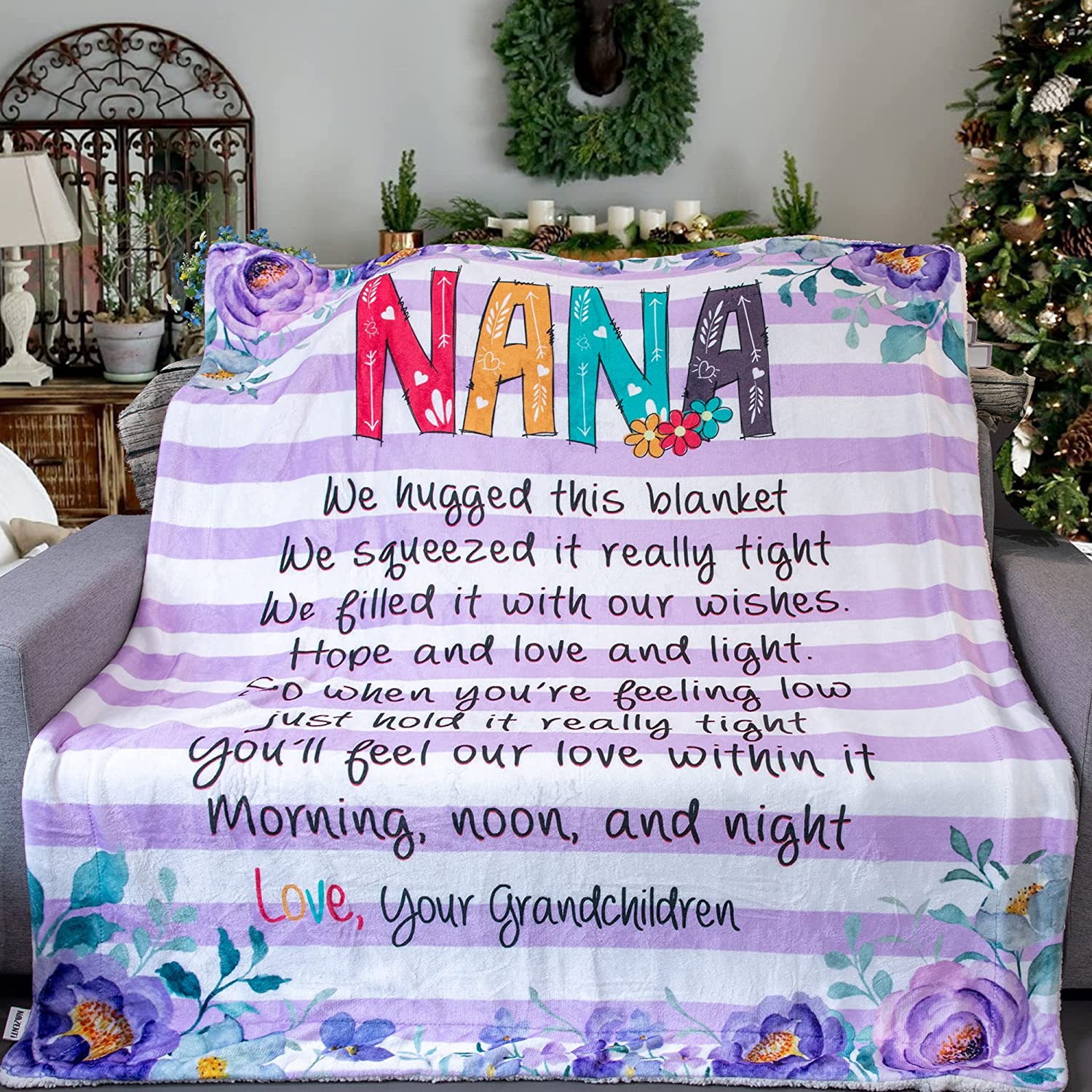 The Perfect Gift for Mother's Day Gift for Moms and Grandmothers, this personalized blanket is customized with family names, as well as the color and material of your choice to make a truly unique and treasured gift.